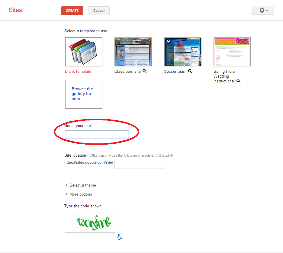 Create a New Site. When you've successfully logged in to Google Sites do the following: